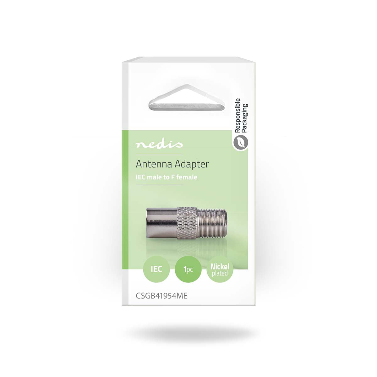 Adaptateur Satellite et Antenne F Femelle - IEC (Coax) Mâle - Plaqué nickel