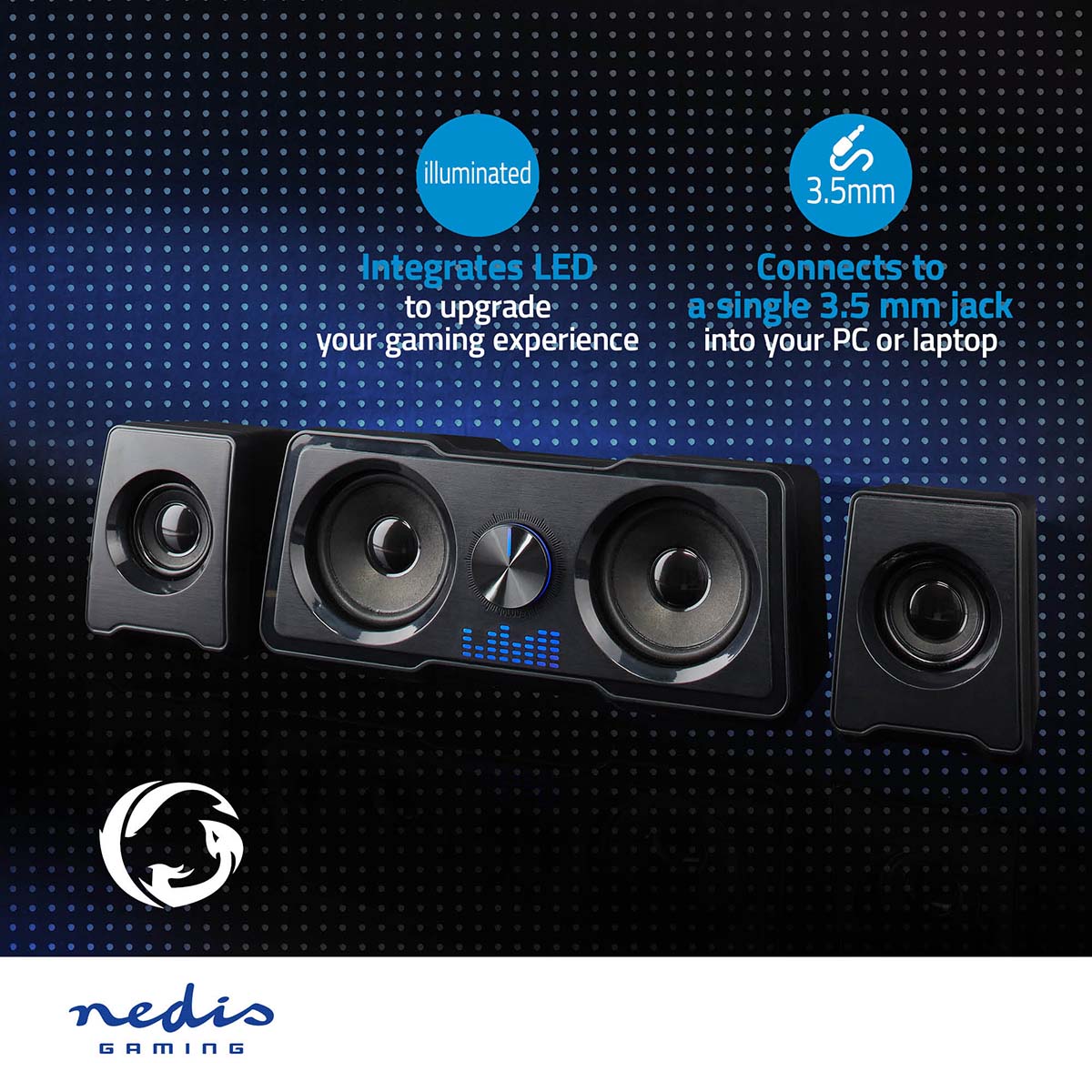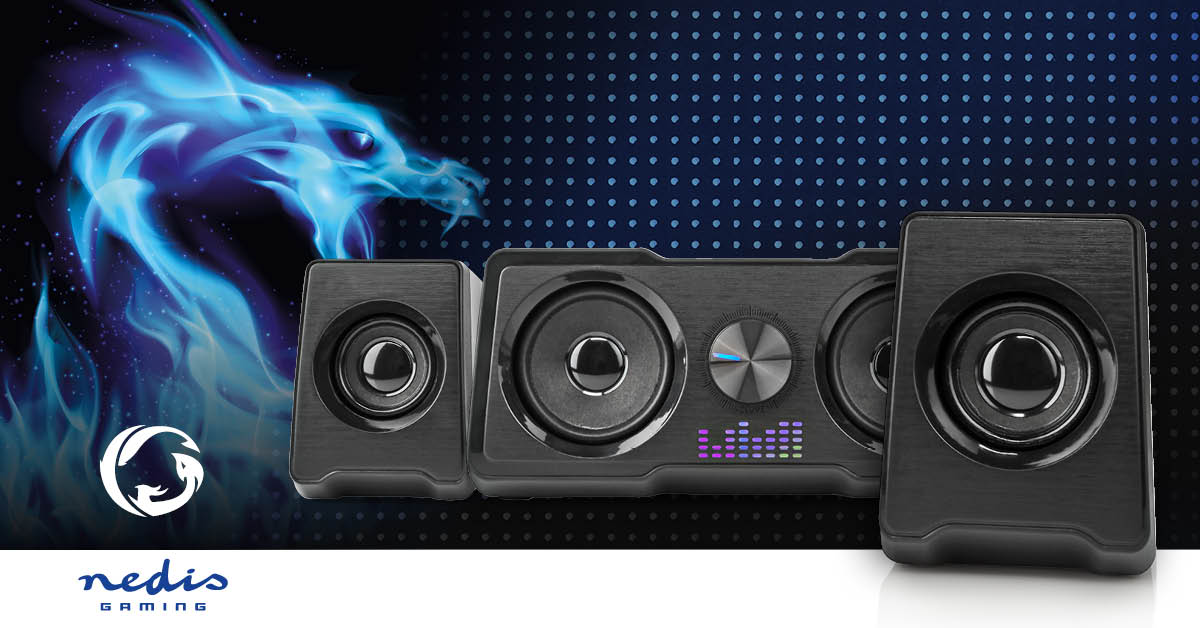 Puissant haut-parleur de jeu 2.2 avec double subwoofer pour des basses explosives et un son cristallin. Vivez chaque jeu dans les moindres détails. Alimenté par USB, prêt à l'emploi via une connexion 3,5 mm.