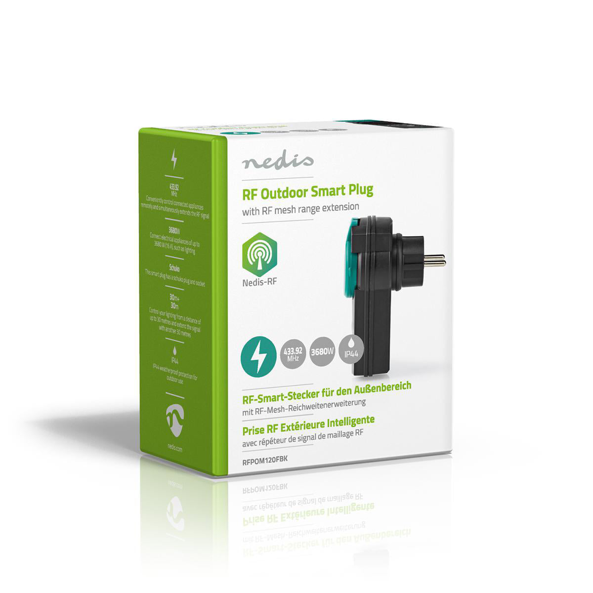 Activez les appareils sans fil avec cette prise RF 433MHz. Fonction mesh pour une portée supplémentaire de 50m. Résistant aux intempéries IP44. Associez jusqu'à 5 télécommandes. Max 3680W.