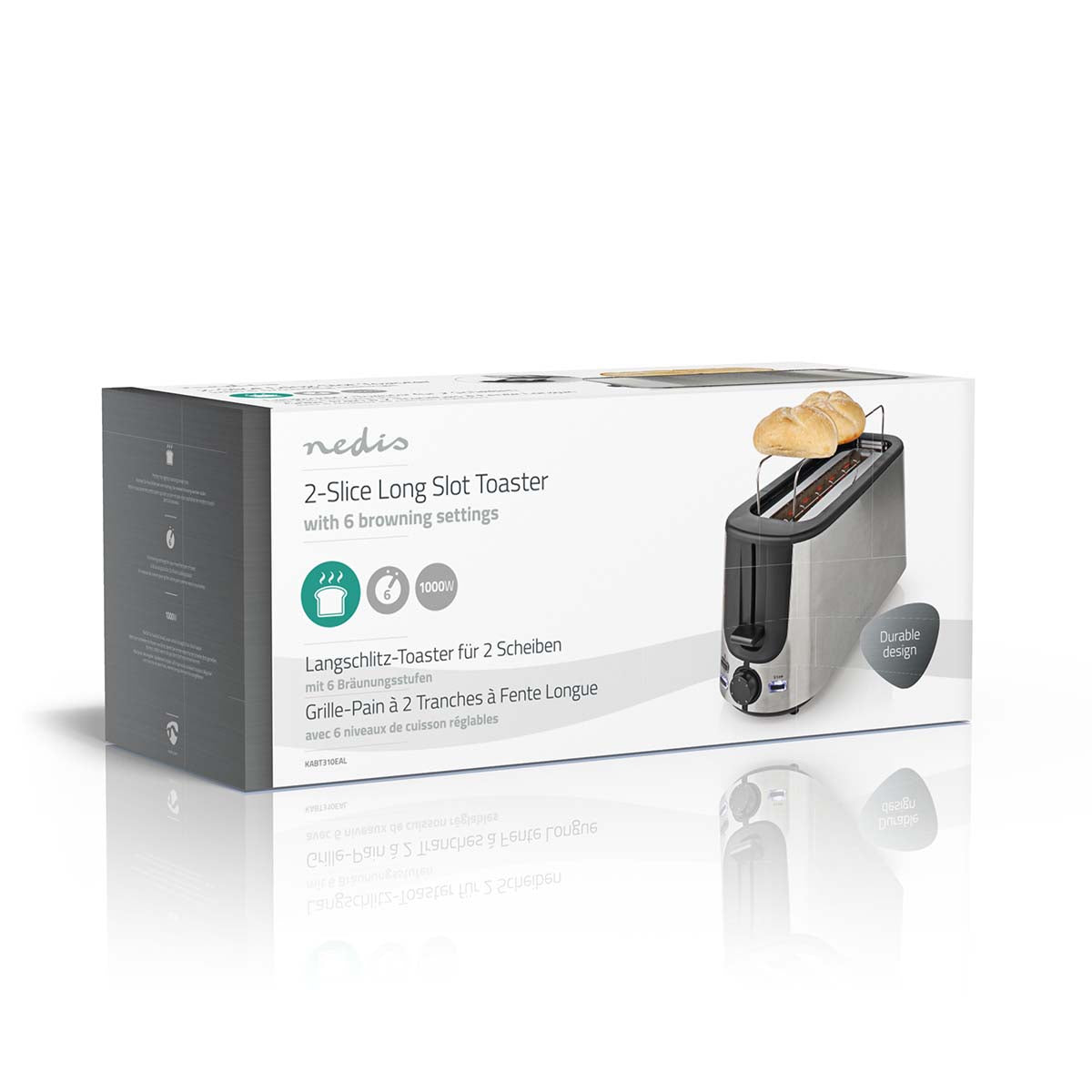 Slanke broodrooster met extra lange sleuf voor perfecte toast. 6 bruiningsstanden, ontdooi- en opwarmfunctie. Inclusief broodjesverwarmer en kruimellade. Ideaal voor dagelijks gebruik!