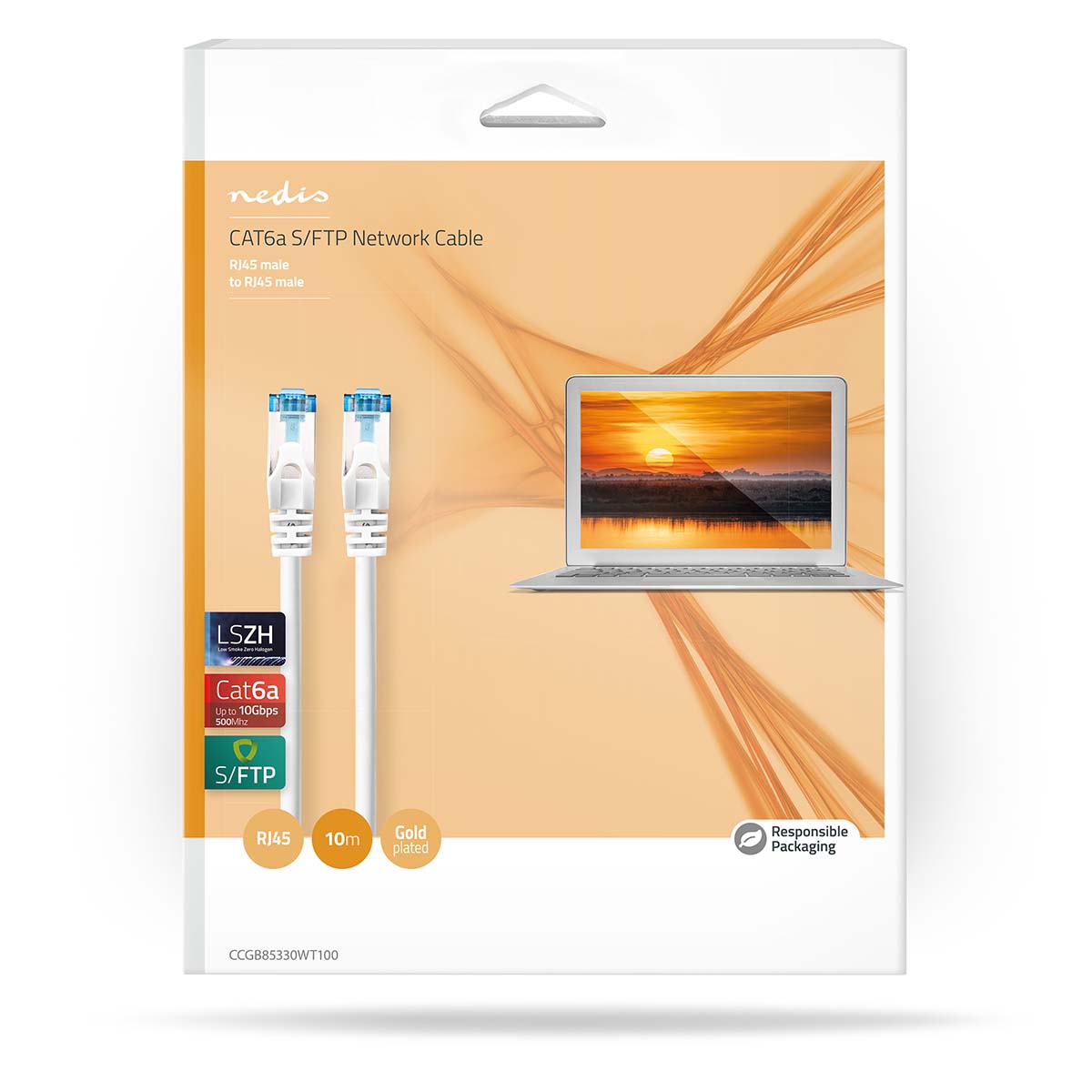 Nedis dubbel afgeschermde patchkabel voor CAT6a-installaties. Geschikt voor een netwerkomgeving van 10/100/1000/10.000 megabit.