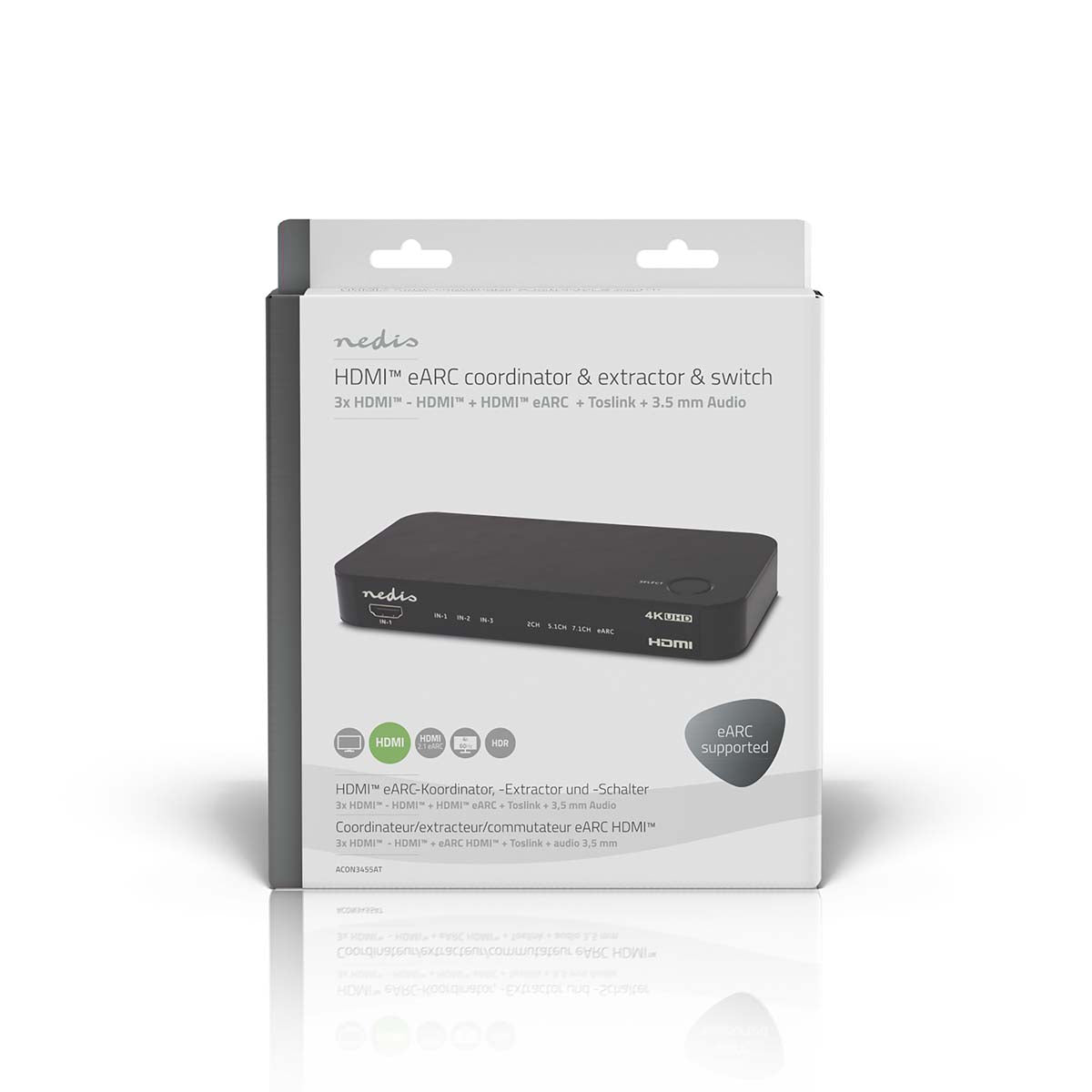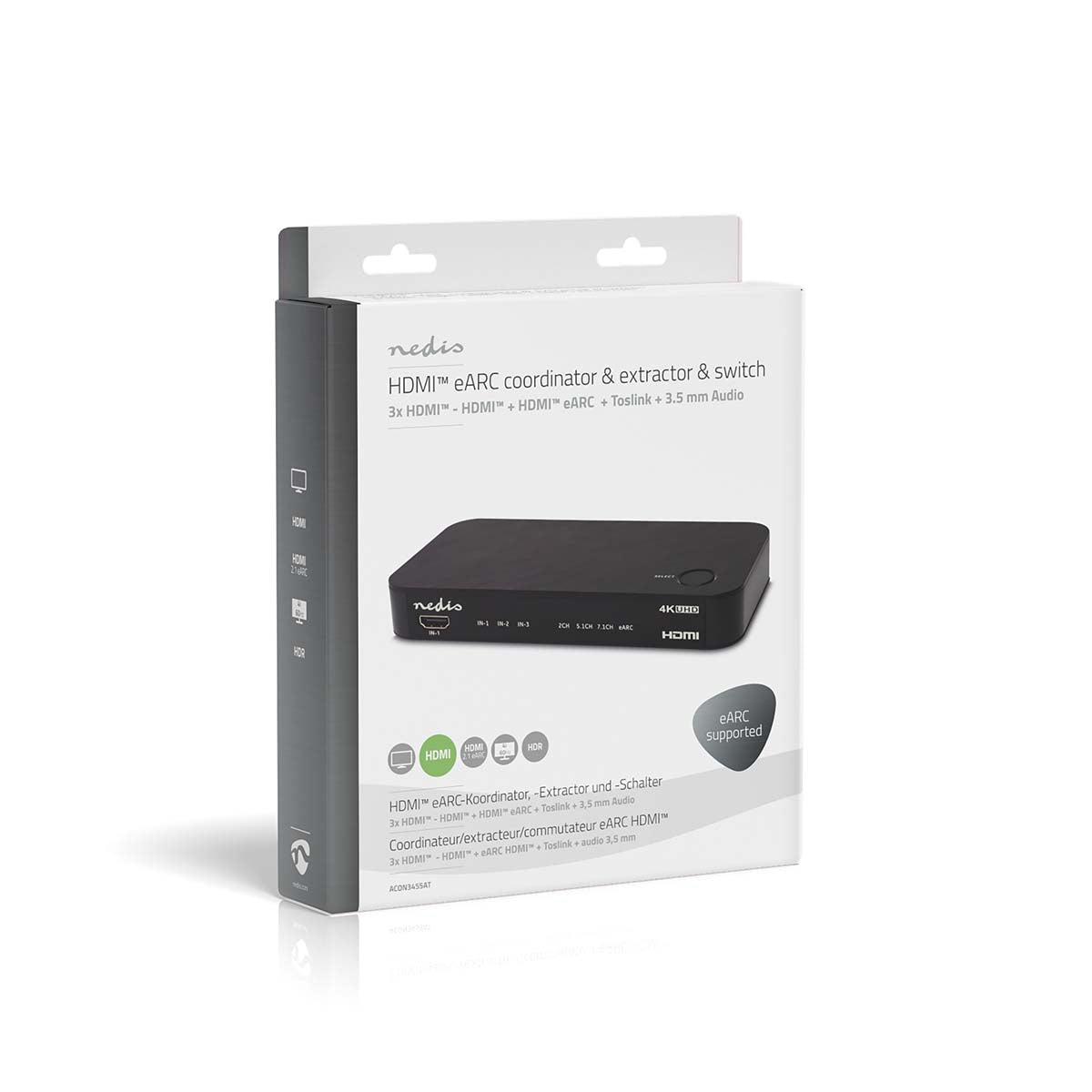 Splits eARC naar ARC en eARC. Ondersteuning voor Dolby Atmos en DTS:X. 3-in-1 HDMI-schakelaar met CEC-bediening. Perfecte oplossing voor moderne home cinema setups.