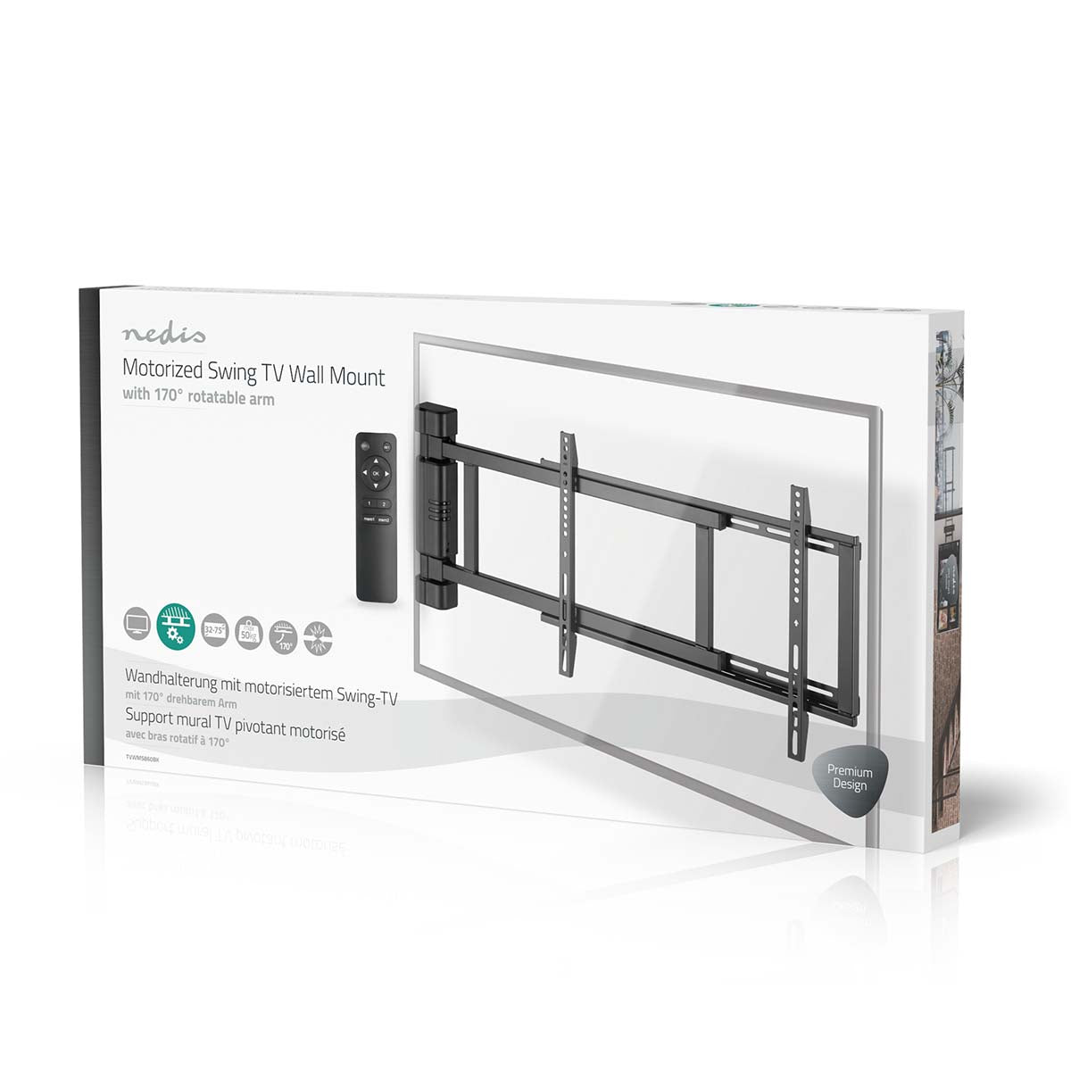 De Nedis gemotoriseerde middelgrote zwenkbevestiging is uw ultieme oplossing voor een naadloze en dynamische tv-kijkervaring. Ontworpen voor de meeste tv-schermen, variërend van 32" tot 75", brengt deze houder ongeëvenaard gemak en innovatie in uw home entertainment-opstelling.