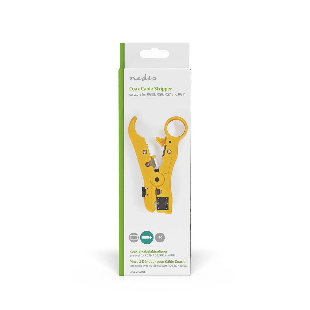 Deze volledig instelbare dubbelzijdige coaxkabelstripper verwijdert 4, 6, 8 en 12 mm kabelisolatie. Gebruiksvriendelijker kan het niet: u vergrendelt de tang op de kabel, draai de tang rechtsom en trekt het ongewenste deel eraf.
