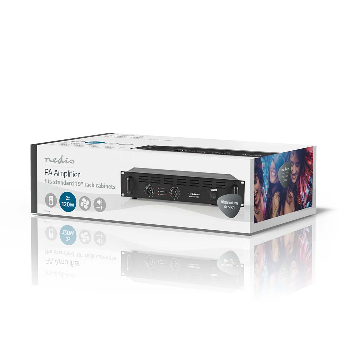 Professionele 2x120W PA-versterker voor 19" rack. Betrouwbaar met geïntegreerde koeling, piekindicator en flexibele speakeraansluitingen. Ideaal voor veeleisende DJ's.