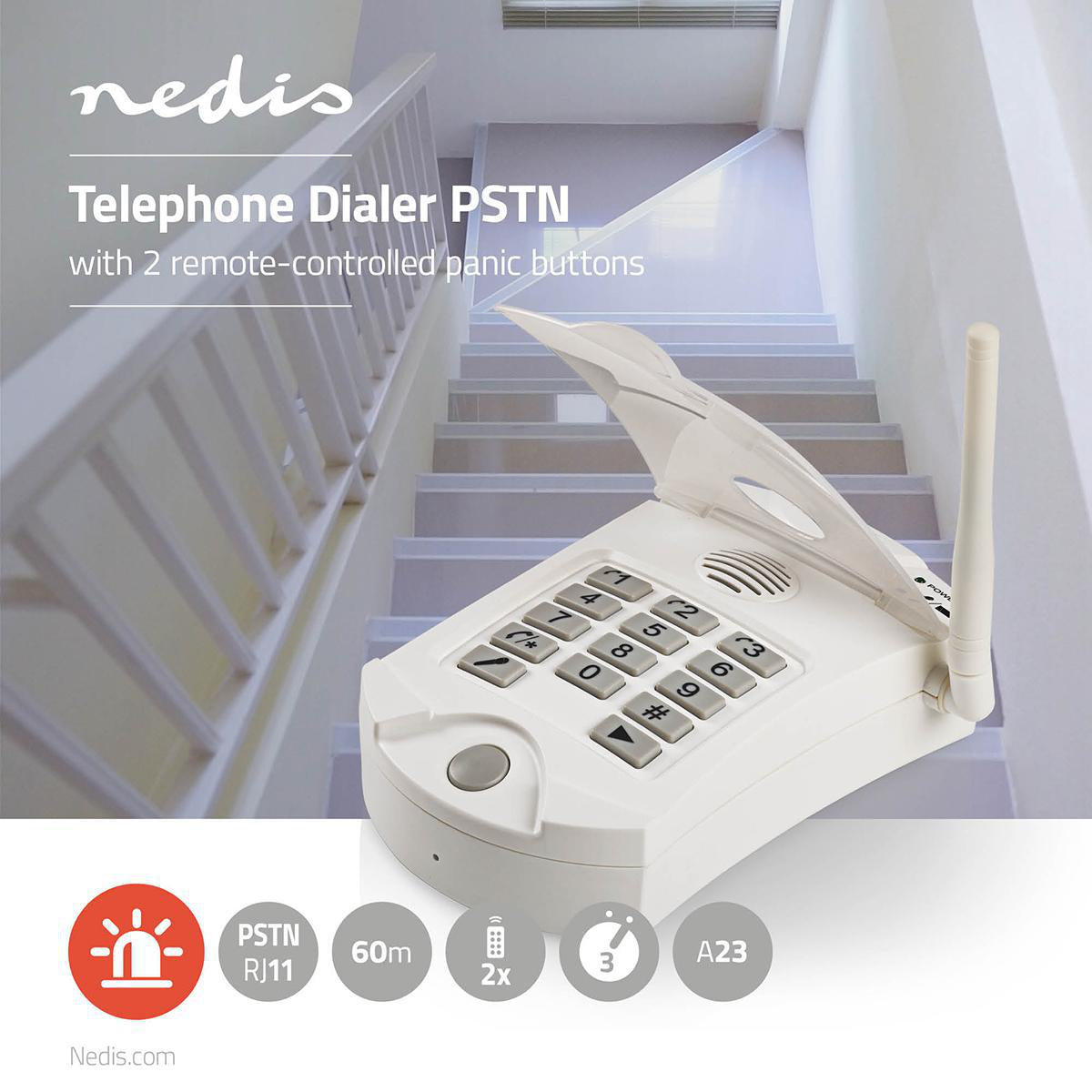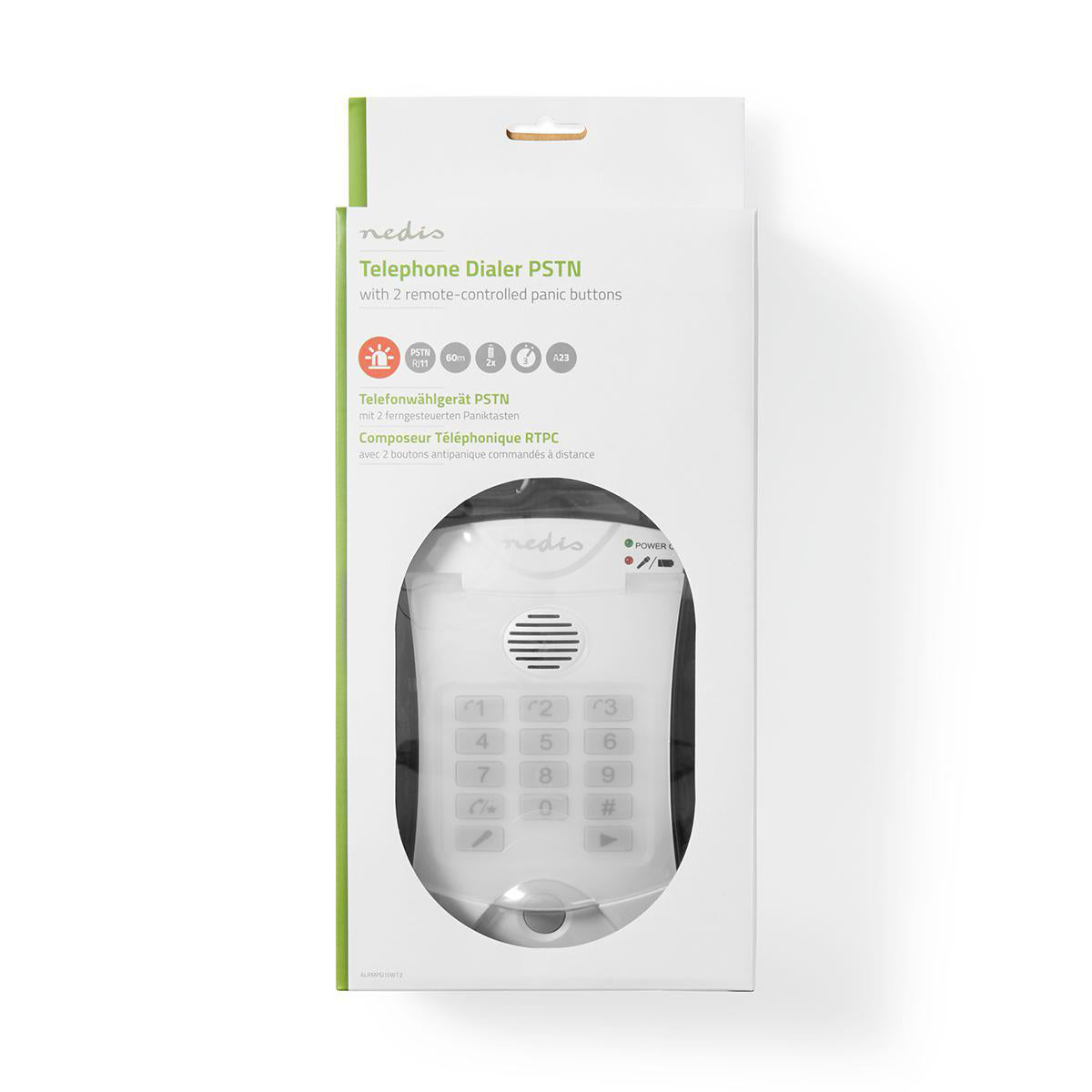 Hulpalarmsysteem met ingebouwde telefoonkiezer voor noodsituaties. Als de paniektoets op de bijgeleverde afstandbedieninng ingedrukt wordt, draait er een ingesproken boodschap bij een voorgeprogrammeerd telefoonnummer. Er is genoeg geheugen voor 3 noodnummers. De ontvanger activeert een intercomverbinding als hij/zij een numerieke toets indrukt. Ideaal voor alleenstaande mensen die snel hulp nodig hebben in noodsituaties. Geleverd met nekkoord en losse afstandbediening met paniekknop.