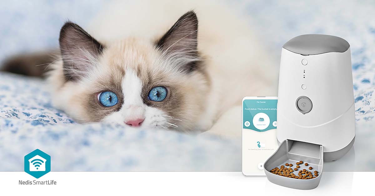 Met deze slimme voerdispenser voor huisdieren kunt u precies programmeren op welk tijdstip een bepaalde hoeveelheid voedsel wordt gegeven (in porties van ca. 20 ml). Daarnaast kunt u uw huisdieren handmatig op afstand voeren met de app op uw smartphone.