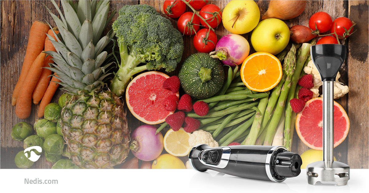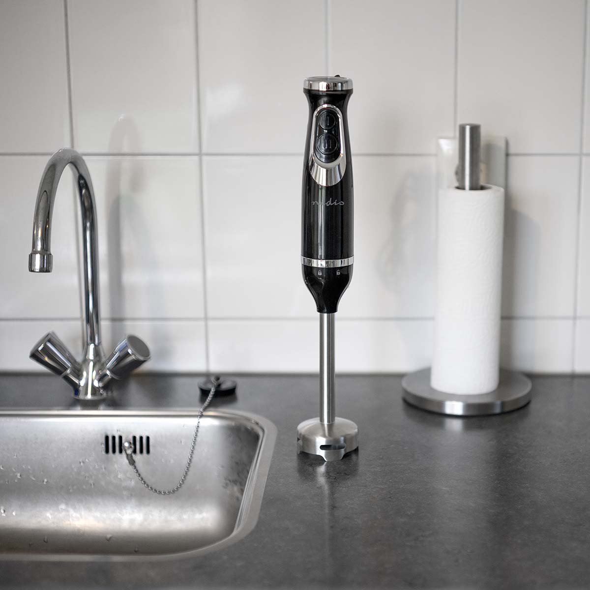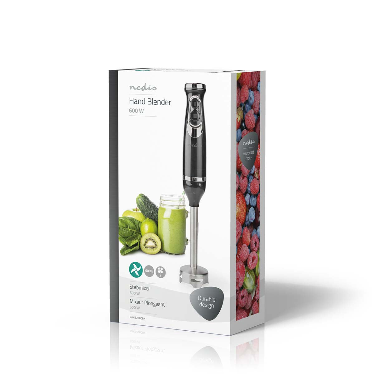 Deze Nedis staafmixer is de ideale blender voor iedereen die gladde soepen, sauzen of smoothies wil bereiden. De stijlvolle staafmixer heeft een AC-motor van 600 W en een ergonomische vorm waardoor hij comfortabel vast te houden is. Door op de knop aan de bovenkant te drukken, kun je de snelheid van de staafmixer regelen, met de turbofunctie kun je ingrediënten extra glad en snel pureren.
