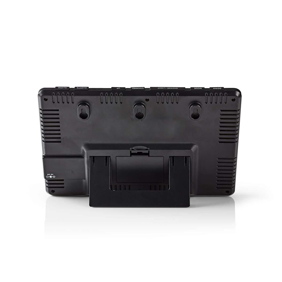 Dit veelzijdige Nedis draadloze weerstation verschaft informatie over de binnen- en buitentemperatuur, en ook over verwachte weersomstandigheden. Daarbij heeft het een wekkerfunctie, dus of het nu gaat regenen of de zon gaat schijnen, u bent altijd op tijd uit bed!